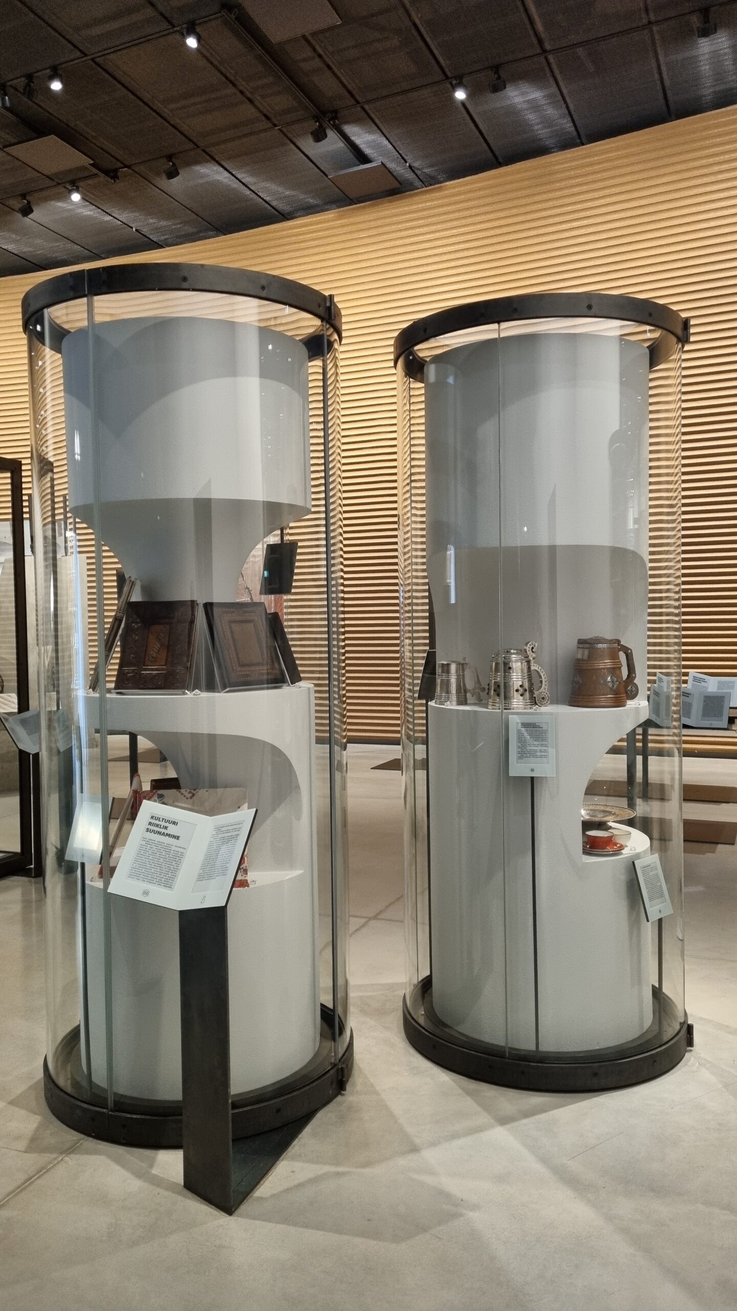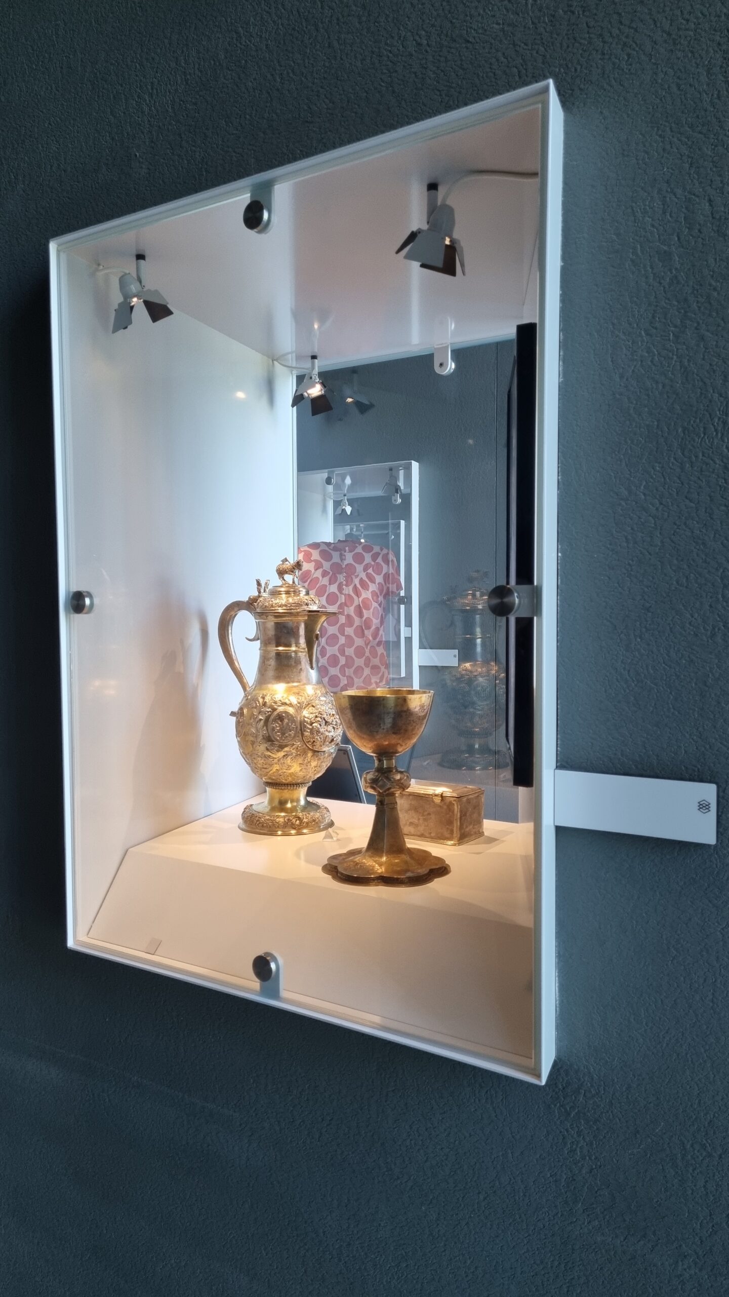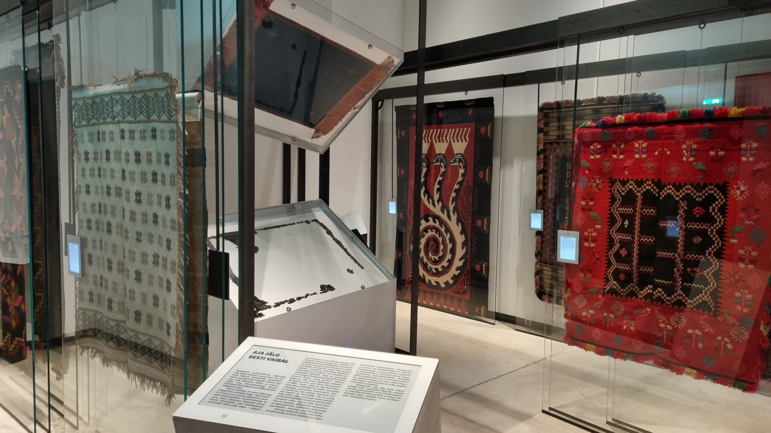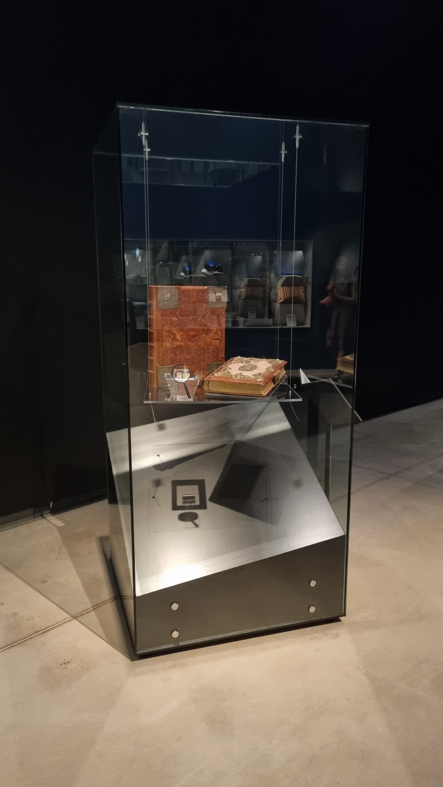 Museaalide klaasvitriinid, riigi esimese sini-must-valge lipu vitriin.