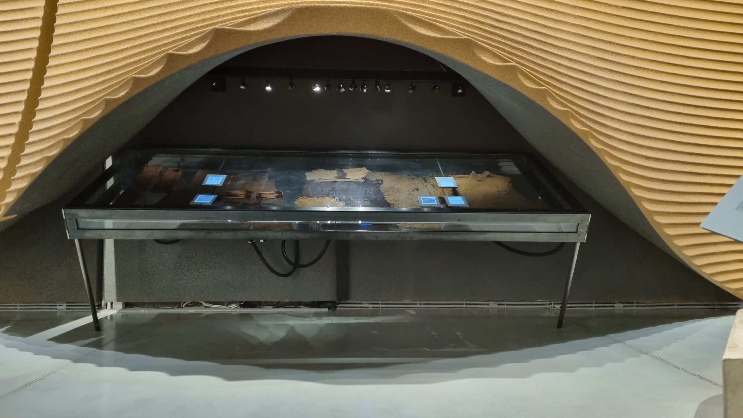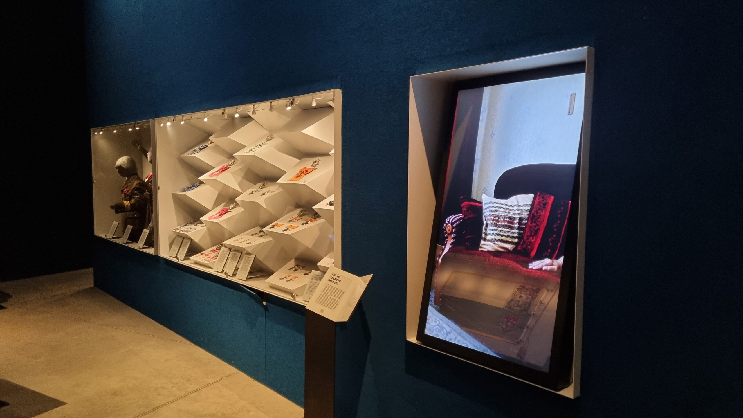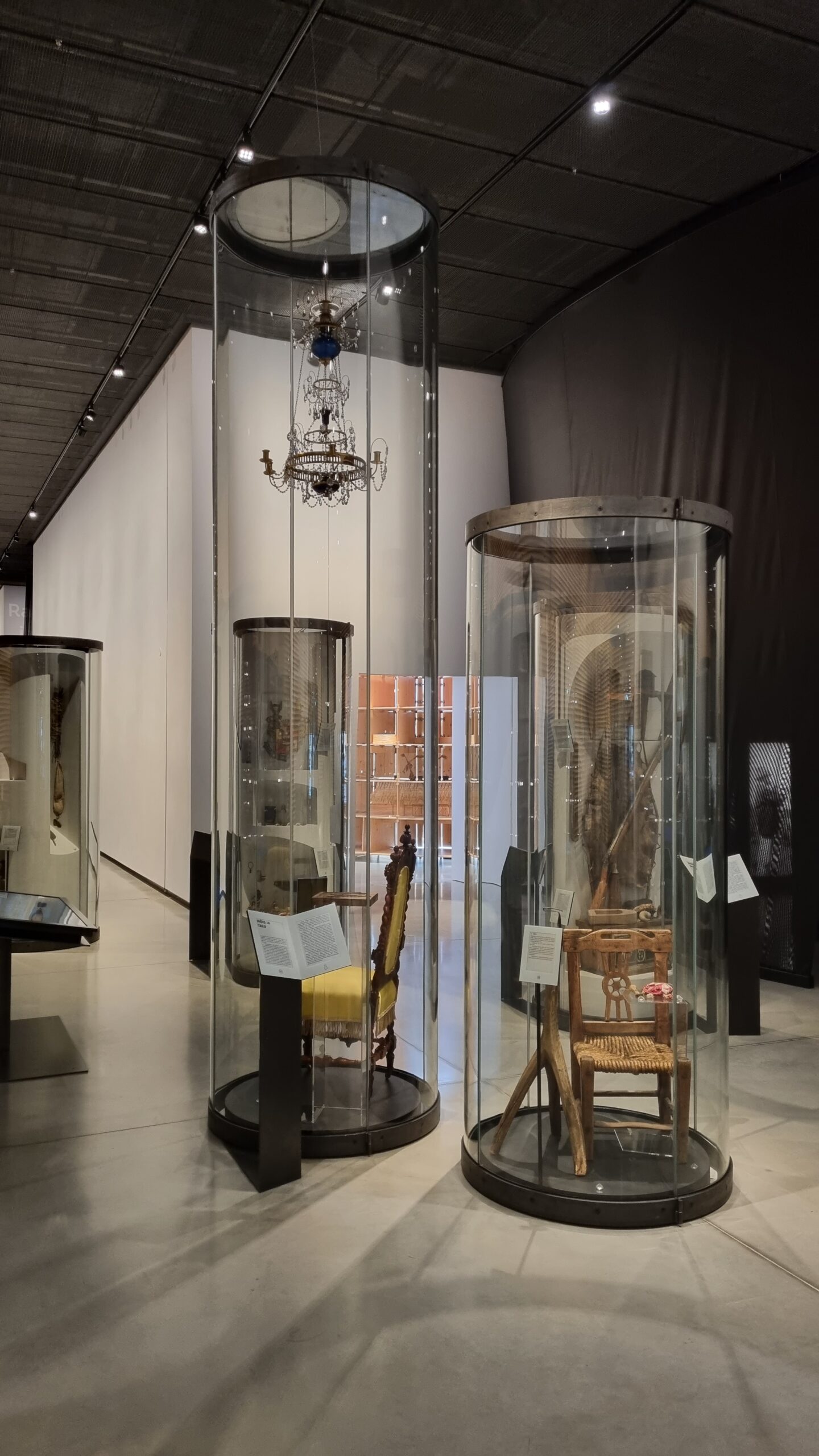 Museaalide klaasvitriinid, riigi esimese sini-must-valge lipu vitriin.