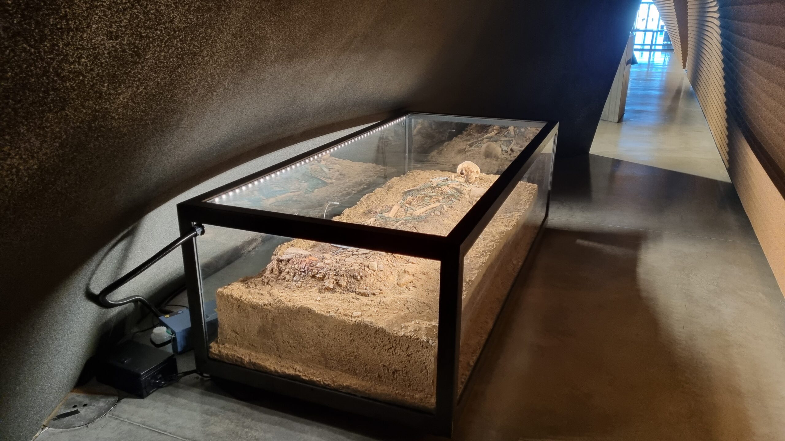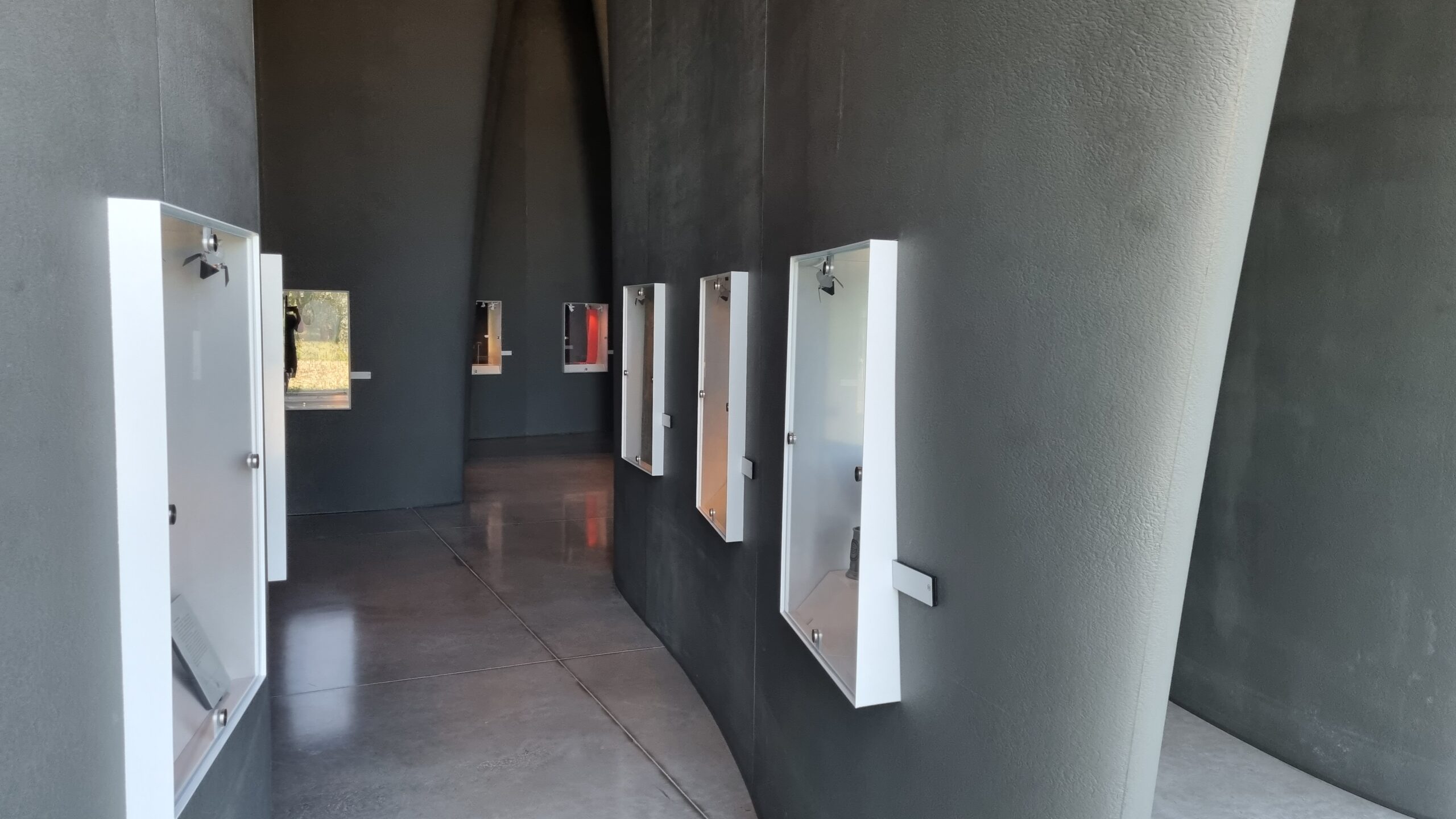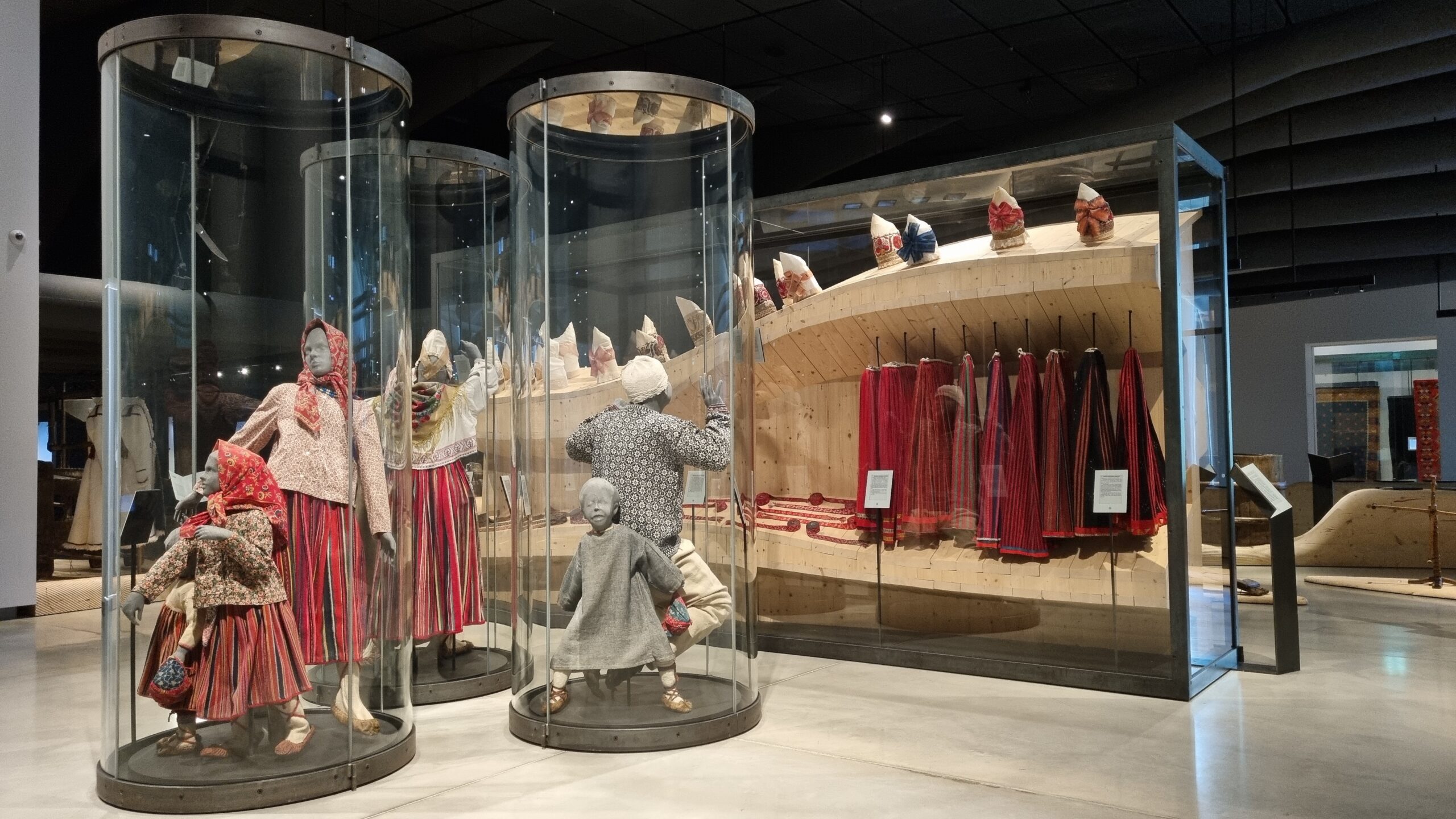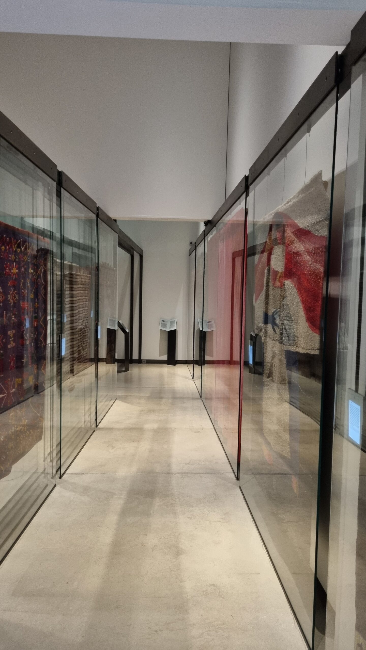 Museaalide klaasvitriinid, riigi esimese sini-must-valge lipu vitriin.