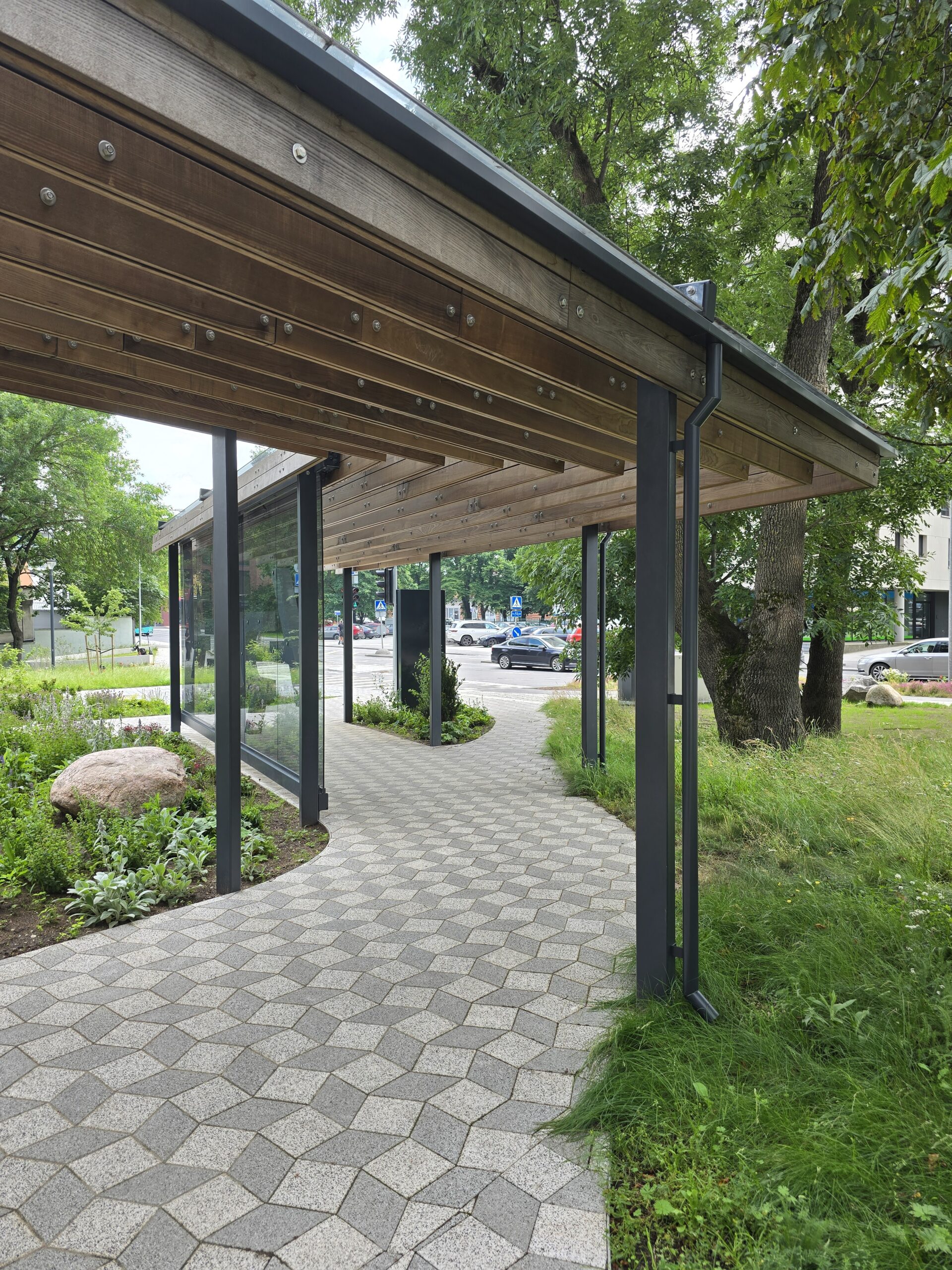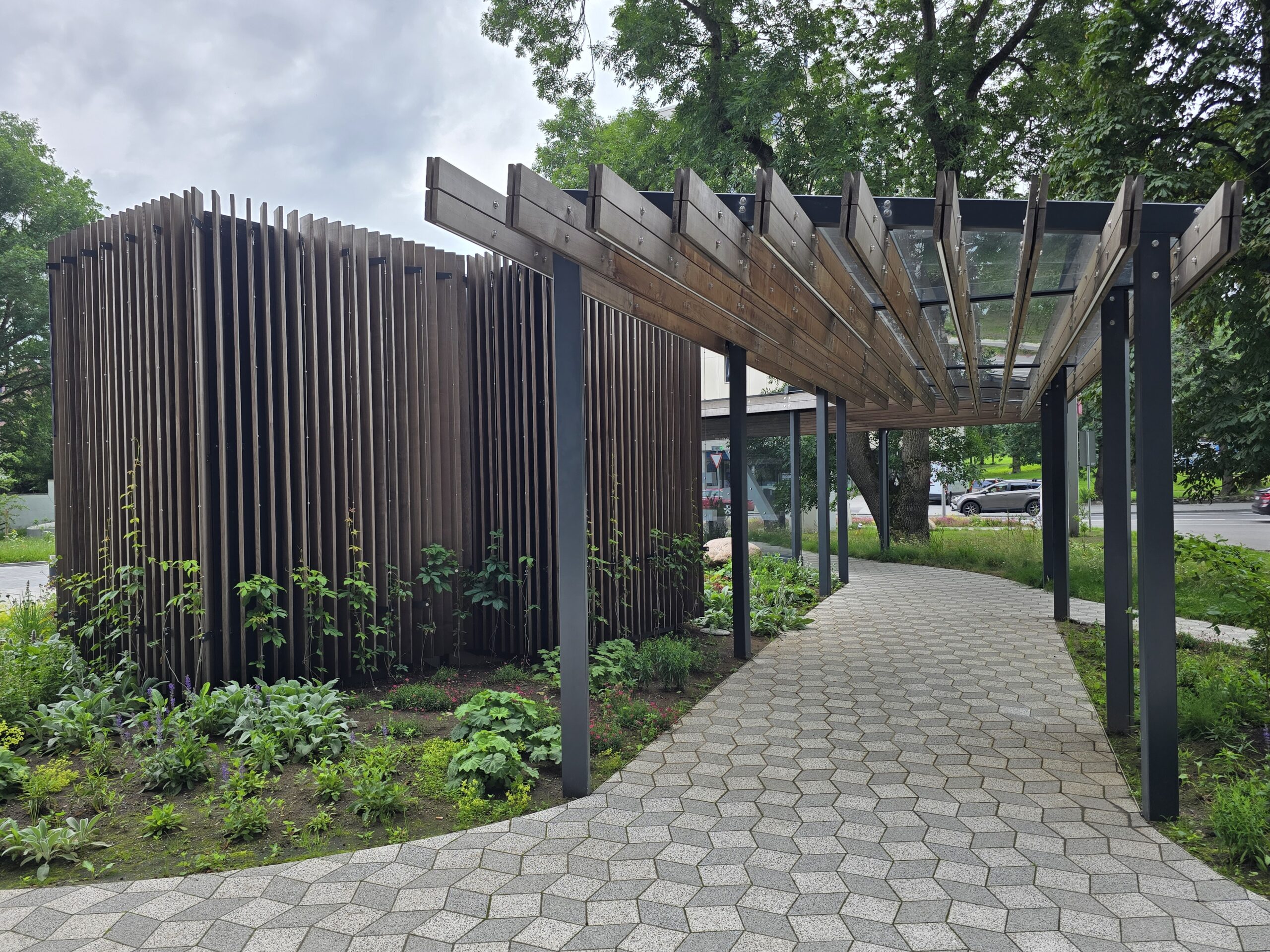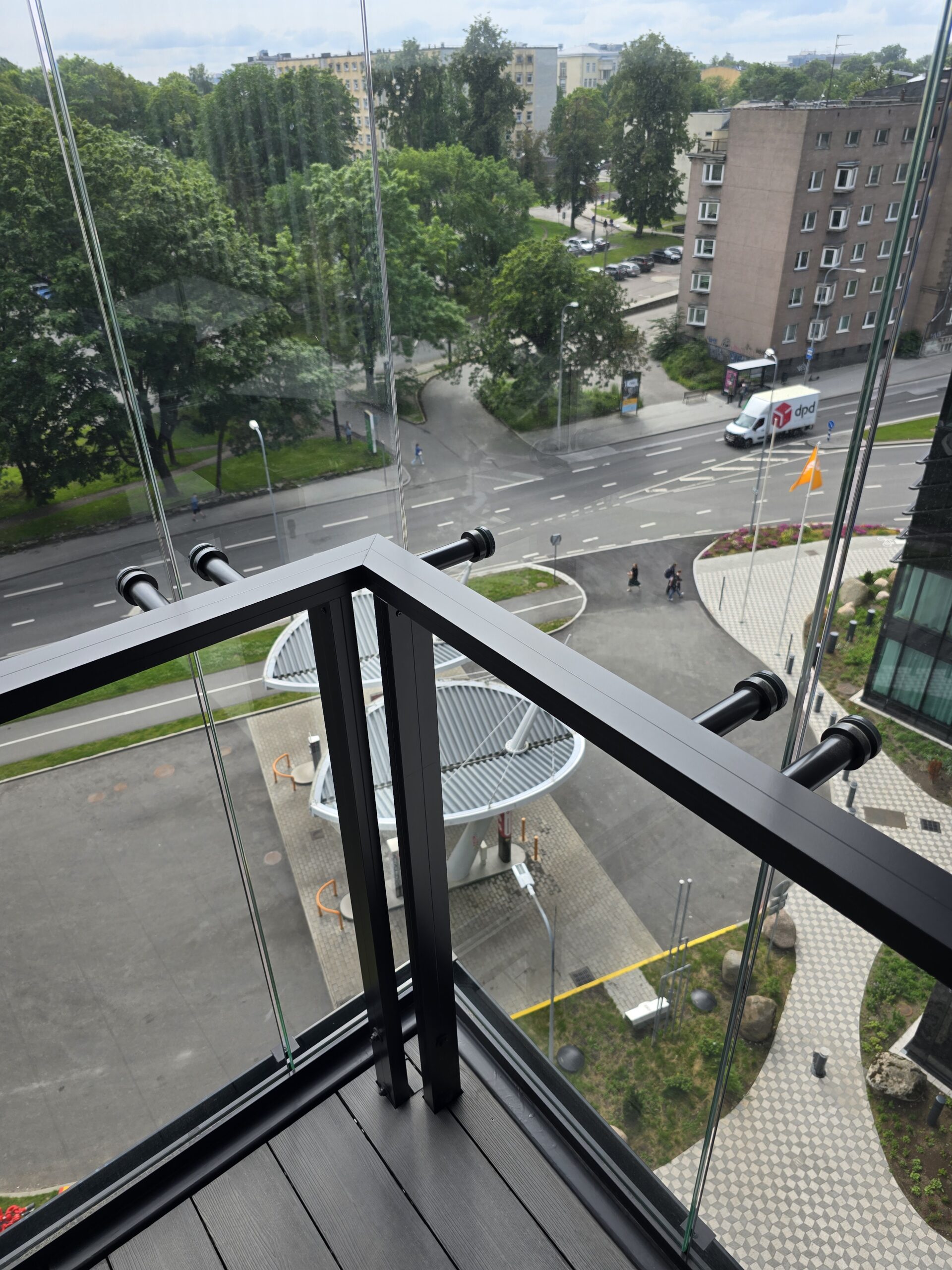 Välisalade pergolad ja venttornide ümbrised, C-Torni rõdude klaasfassaad ja piirded.