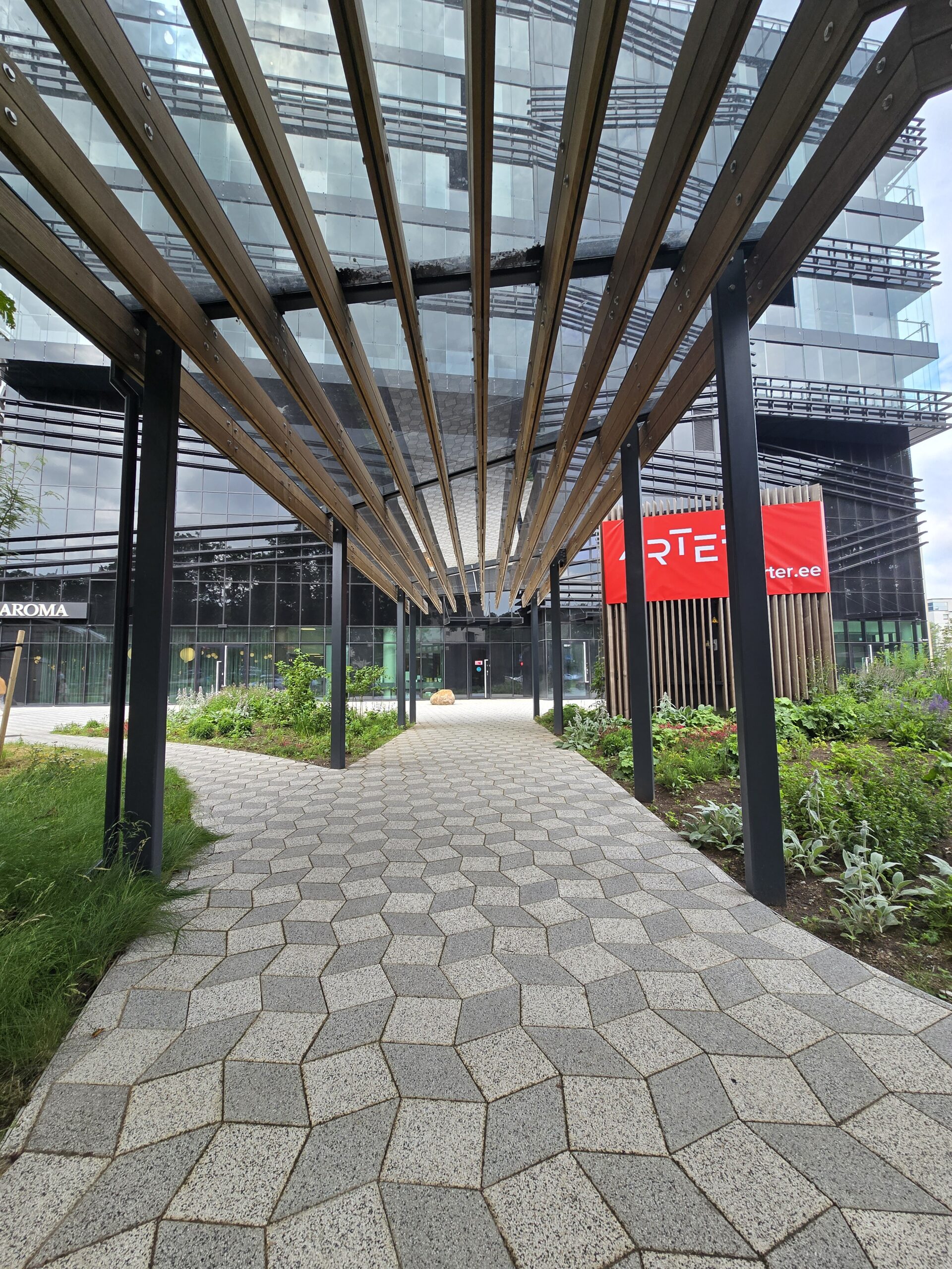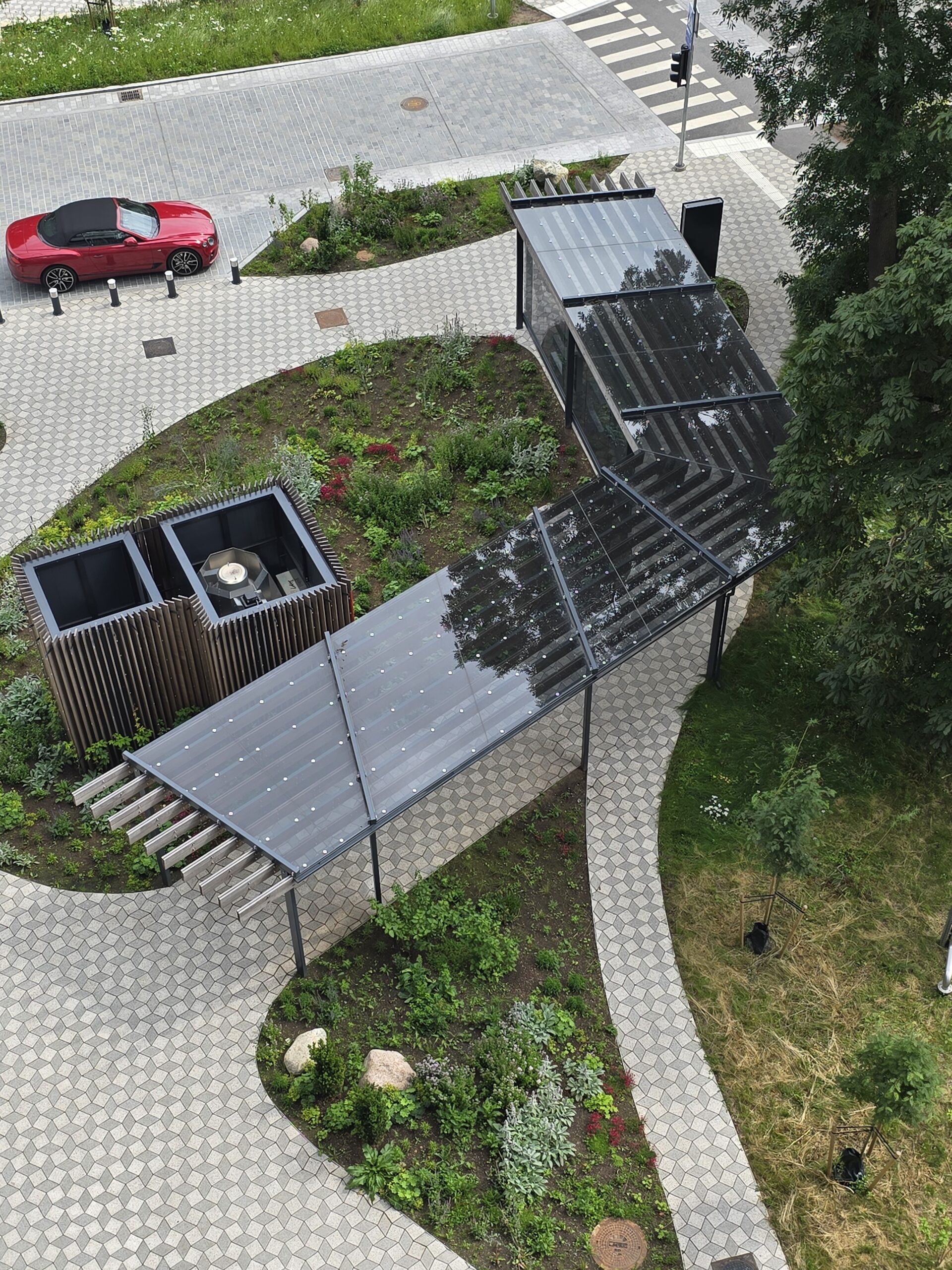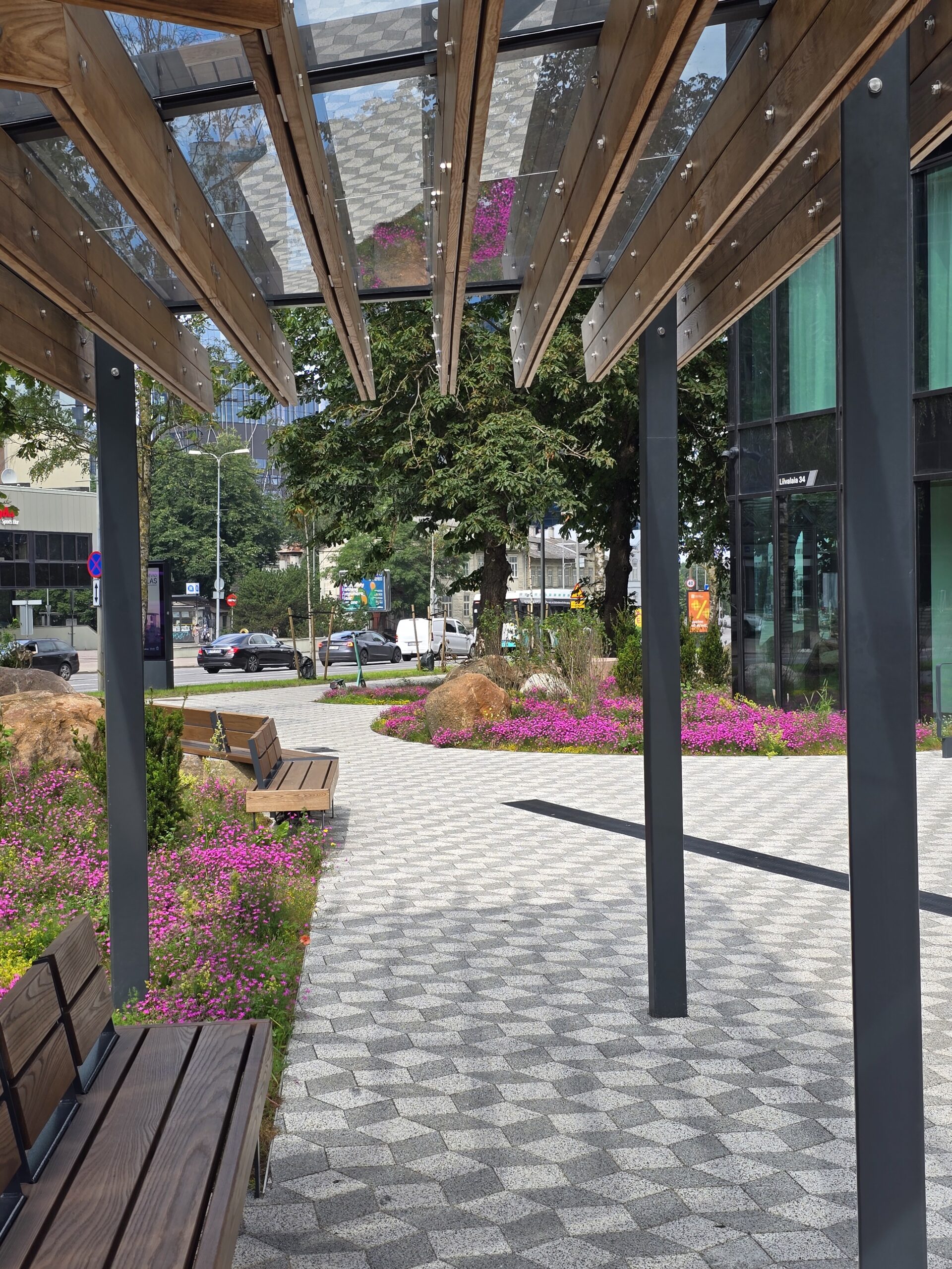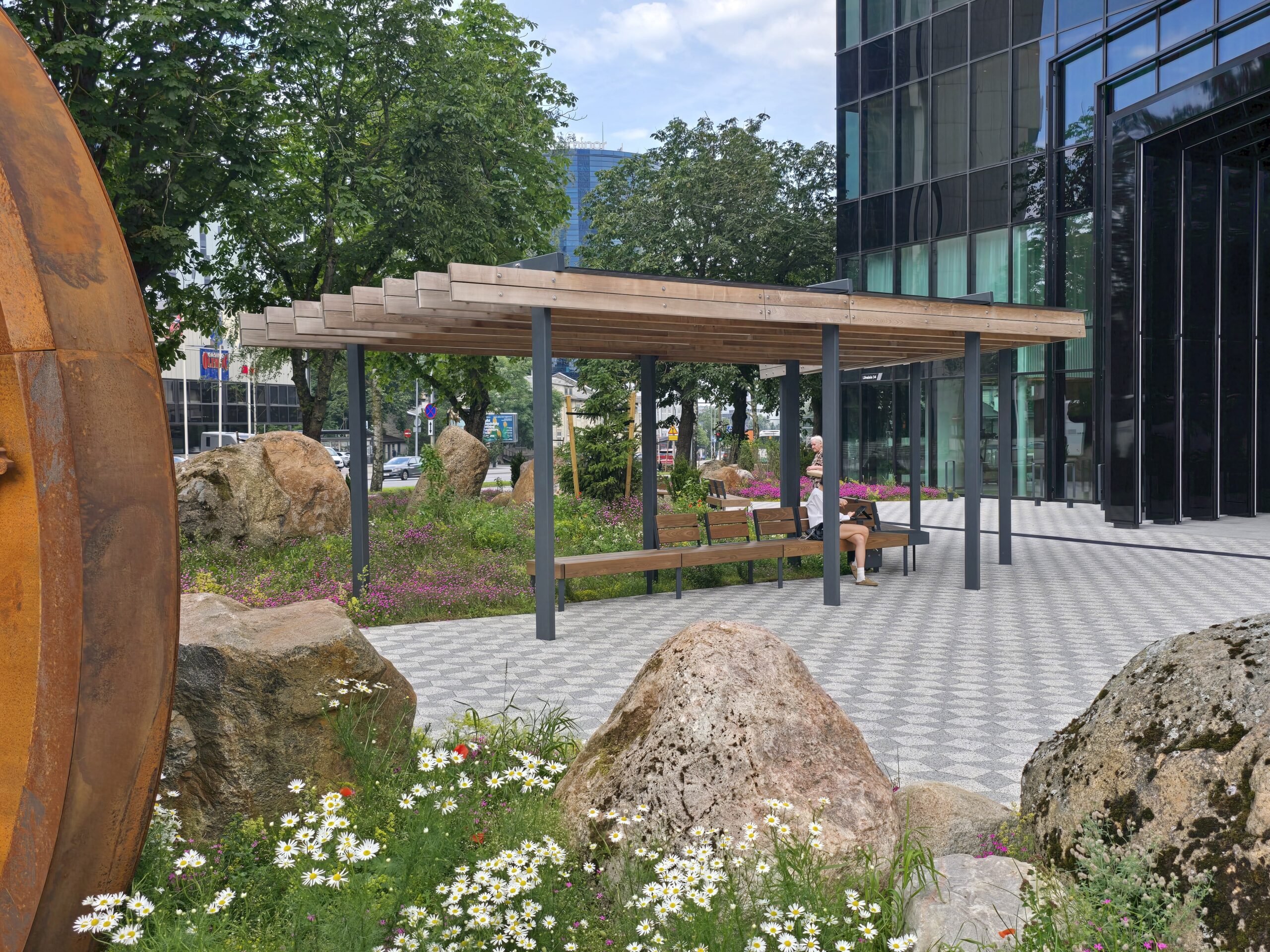 Välisalade pergolad ja venttornide ümbrised, C-Torni rõdude klaasfassaad ja piirded.