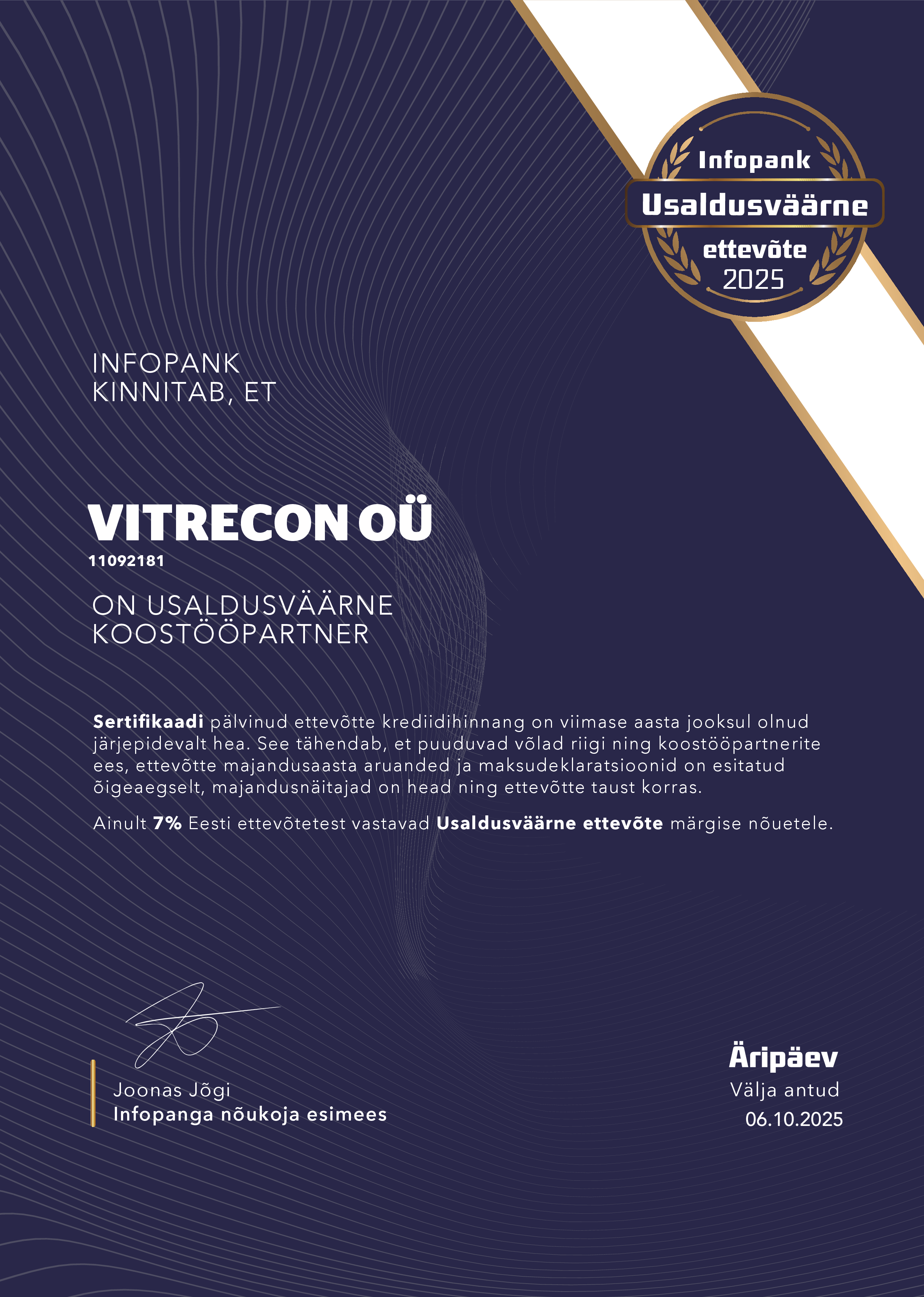 - Telefoni teel, e-posti teel ja Vitreconi kontorit külastavale kliendile on konsultatsioon tasuta.